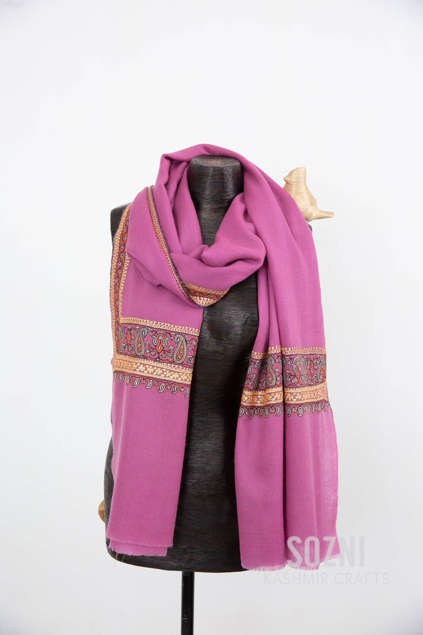 Cherry Border Pashmina with Gold Line Embroidery Stole