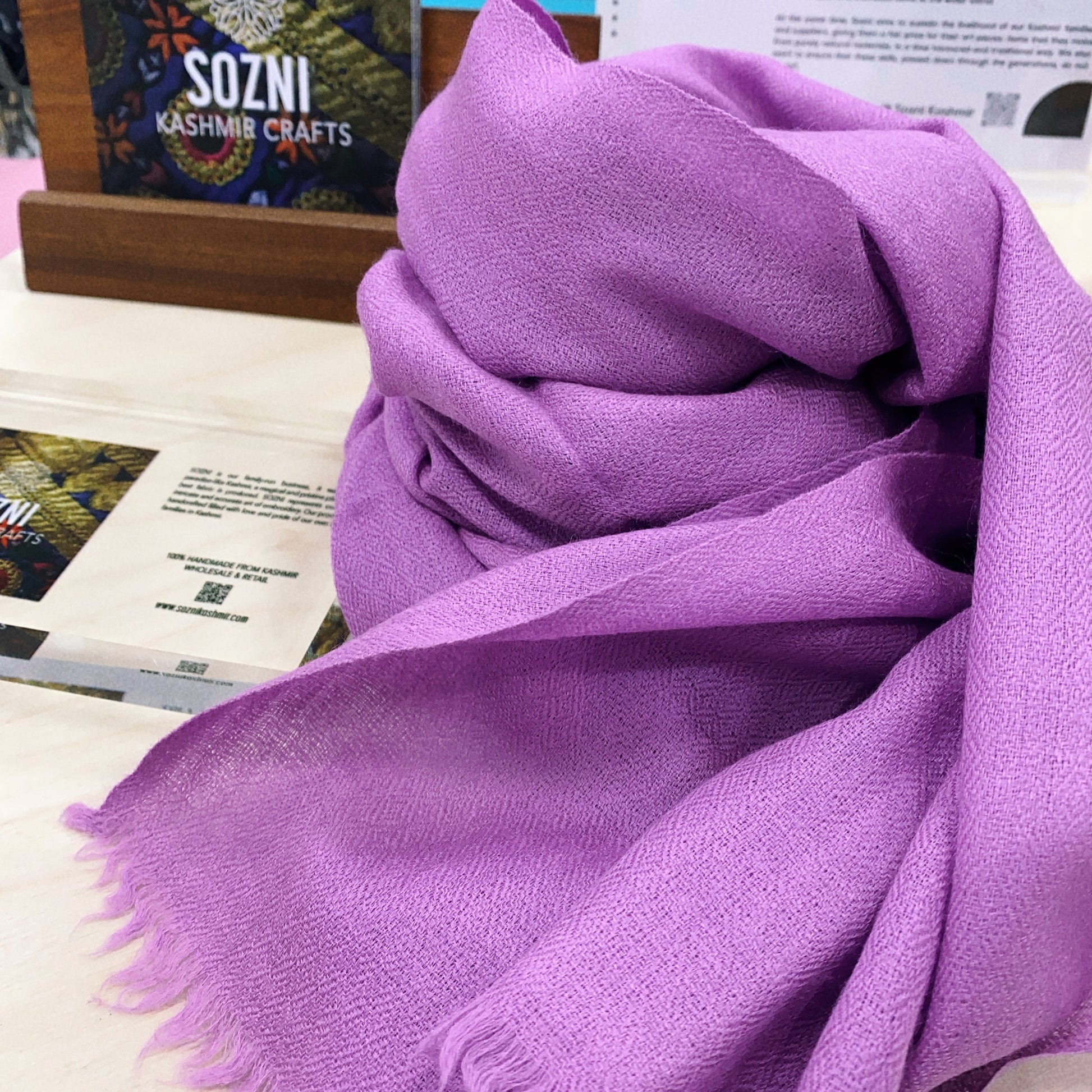 This beautifully crafted Lilac Cashmere Scarf is a perfect accessory for any occasion. Hand woven with cashmere, it is ultra-soft, lightweight, and warm, making it ideal for chilly days. Add a stylish touch to your look with this luxurious scarf.